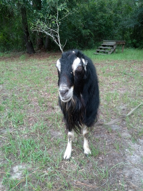 Ritz is a beautiful full-blooded LaMancha buck. He became very good tempered once he figured out that I was the boss, not him. For more info about Ritz, check the "Our Family Farm Animals" page.